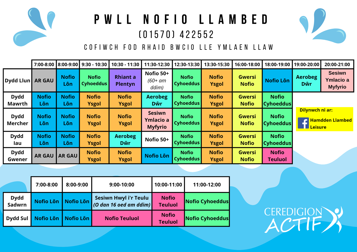 | Dydd Sadwrn | 07.00 - 12.00 |