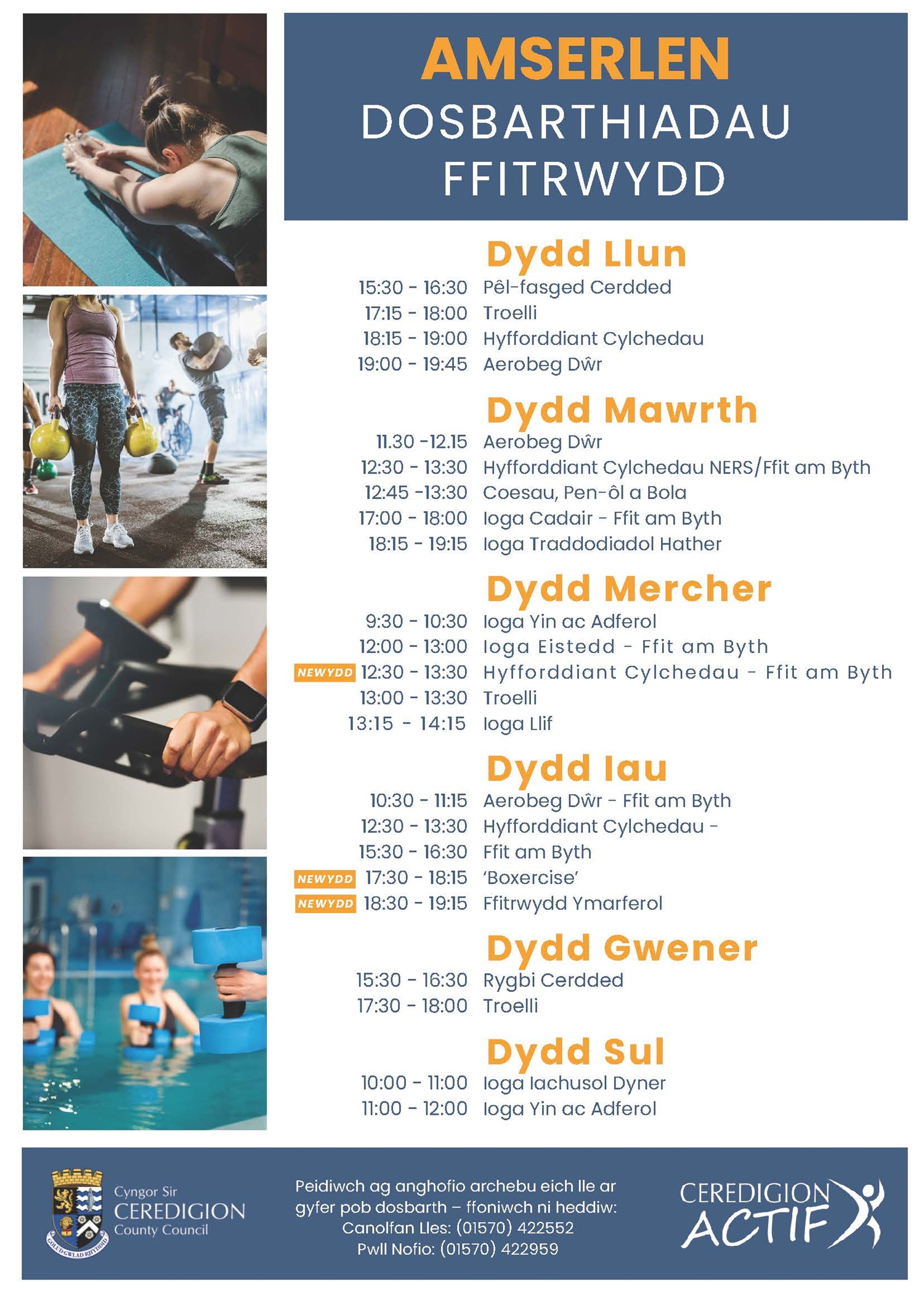 | Dydd Mercher | 08.00 - 21.00 |